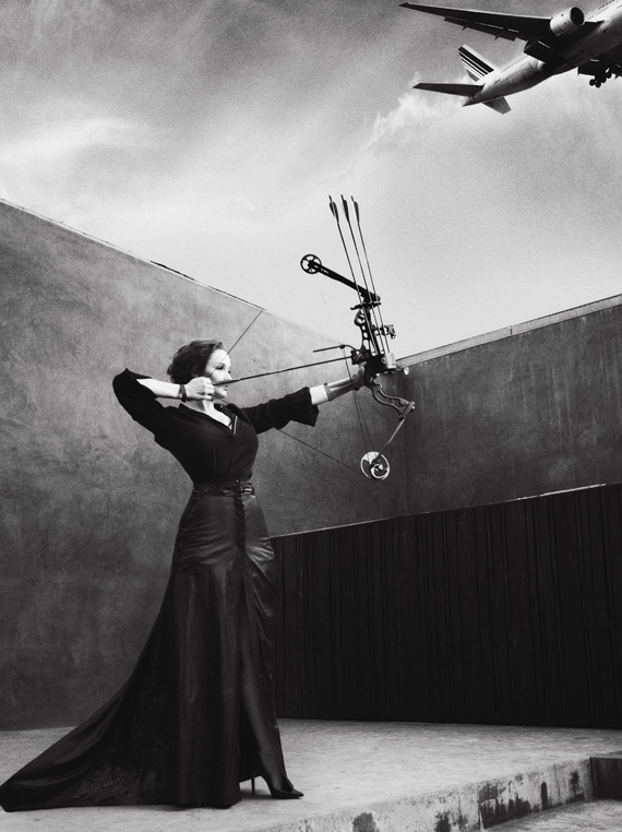 Blah blah, “Strong Women” tropes, blah but seriously Christina Hendricks with a compound bow and what appears to be a floor length leather skirt?? This day needs more beautiful AND more heavy artillery.